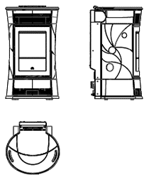 Termoestufa de pellet con laterales de cerámica decorada. Produce aire caliente (desactivable) para calentar la habitación de instalación.
