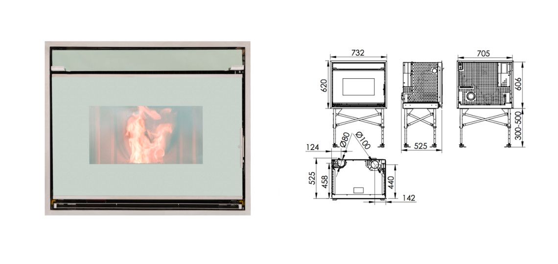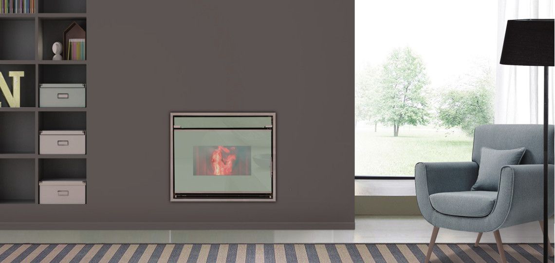 Haz destacar una de las paredes de tu casa con nuestra estufa de pellets Granada. Su puerta del hogar en efecto espejo y su acabado en acero inoxidable hará que tu salón brille un poco más.
