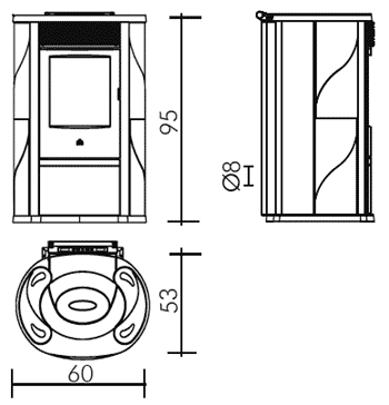 Estufa a pellet de dimensiones pequeñas, con descarga forzada. Evolución del modelo Iris con un nuevo estilo estético y tecnológico. Está acabada con laterales y parte superior en piedra natural. La piedra natural crea junto la superficie de la estufa un muy agradable diseño. La parte superior con panel de control y nuevos mandos ergonómicos facilitan la gestión de la combustión y de la velocidad del aire de calentamiento. La estructura es en fundición, garantía de éxito de la estufa IRIS en la versión precedente. largo 60 cm profundidad 53 cm altura 95 cm capacidad depósito pellet 15 kg rendimiento 89,2 % consumo de combustible (pellet) 0,9/2 kg/h autonomía 6/13,5 h Ø salida humos 8 cm Ø toma de aire 4 cm peso 168 Kg vol. calentable (aislamiento previsto ley 10/91) 210 m³