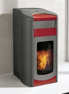 Nueva termoestufa de pellet de Edilkamin de la línea Extra Line, de elevada potencia. Verdadera central de calentamiento de pellet automático y programable, alimenta los radiadores o/y paneles radiantes y el circuito de agua sanitaria de toda la casa. Puede combinarse con otros generadores de agua caliente como calderas de pared de gas o paneles solares. Toronto está disponible con laterales de metal y decoraciones de cerámica roja o crema.