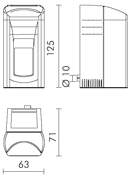 Largo 63 cm Profundidad 71 cm Altura 126 cm Capacidad depósito pellet 60 kg Rendimiento 93,3 % Potencia util del agua 21 kW Contenido de agua 80 l consumo de combustible (pellet) 1,6/5,3 kg/h autonomía 11/35,5 h Ø salida humos 10 cm peso 370 kg vol. calentable (aislamiento previsto ley 10/91) 625 m³